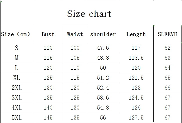 SizeS M L XL 2XL 3XL 4XL 5XL