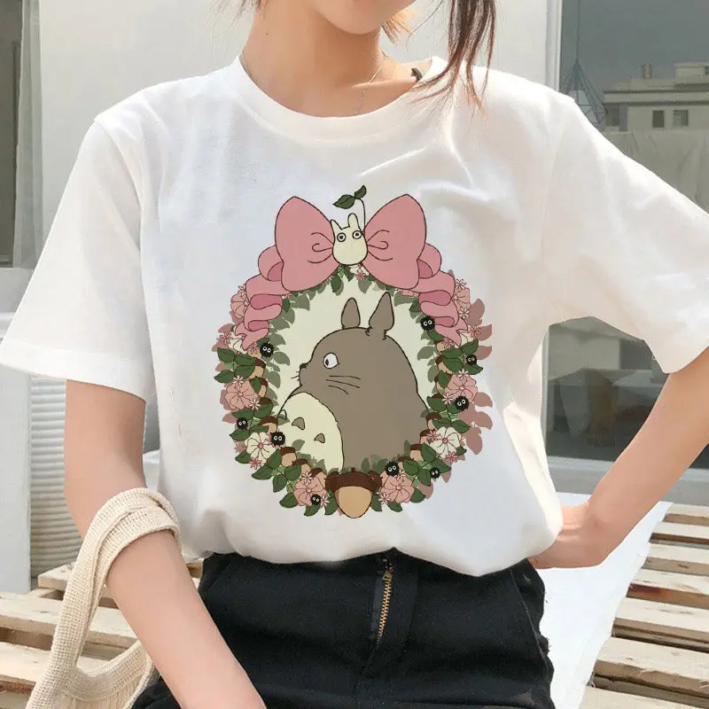 Женская футболка в стиле японского аниме Totoro Spirit Away, одежда Хаяо Миядзаки с круглым вырезом, женские топы