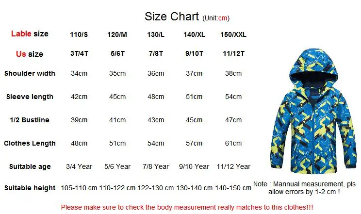 Пожалуйста, убедитесь, что измерения тела действительно соответствуют этой одежде!