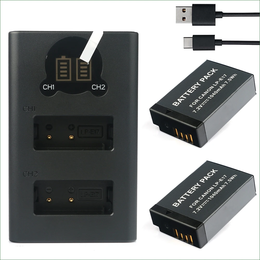 Аккумулятор LP-E17 LP E17 + двойное зарядное устройство USB для Canon EOS 77D 200D 250D 750D 760D 800D 850D 8000D 9000D RP M6 Mark II 200D II