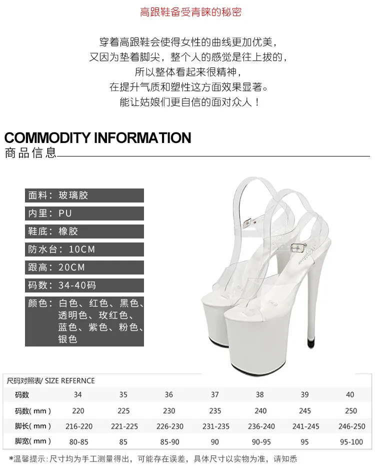 2020 женские босоножки для ночного клуба; Туфли для подиума туфли для танцев на шесте пикантные туфли на очень высоком каблуке 20 см женские босоножки на водонепроницаемой платформе; Свадебные туфли