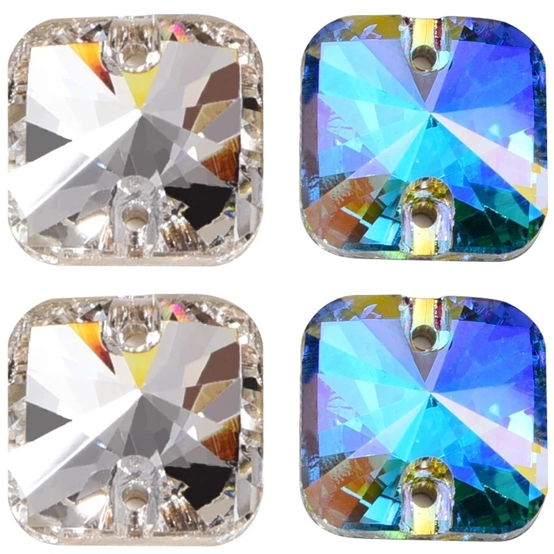 Новые высококачественные квадратные стеклянные стразы AB, стразы с плоским основанием, стразы для шитья, стразы для свадебного платья B3929
