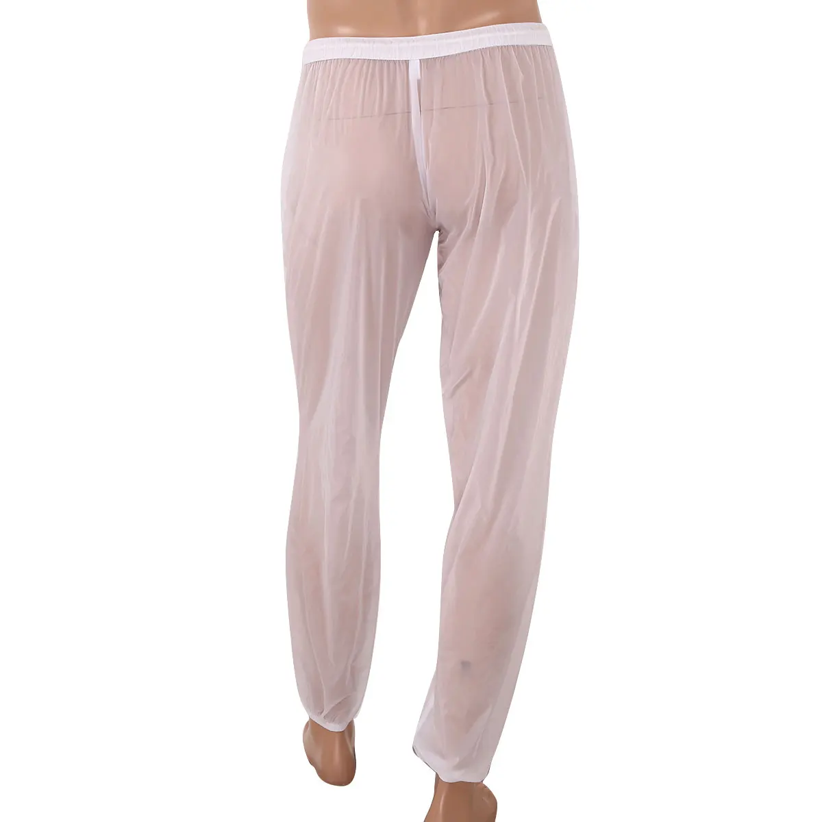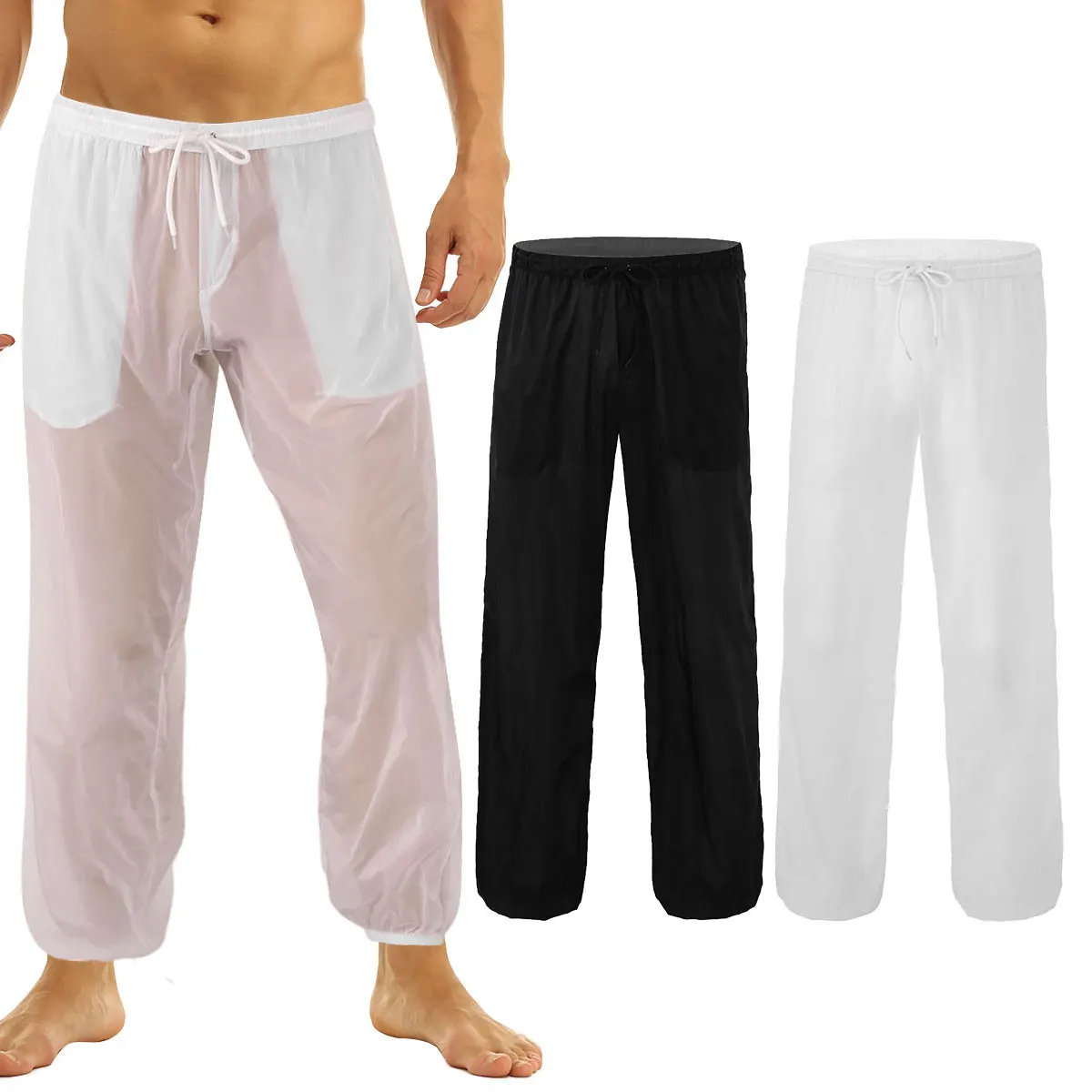 Мужская пляжная одежда ультра-тонкие длинные брюки летние сексуальные с низкой талией прозрачные брюки гей-Фетиш свободные леггинсы с завязками