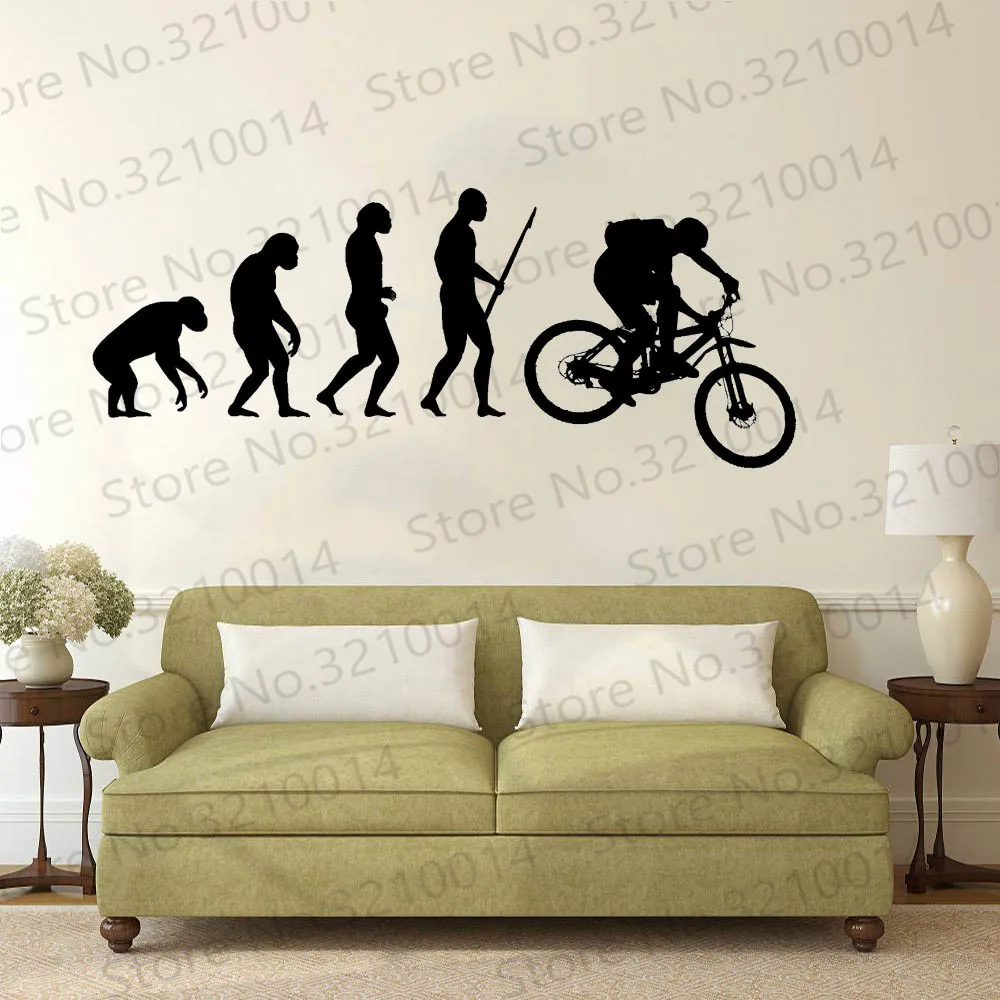 Виниловые Настенные Стикеры с изображением Дарвина и надписью "Эволюция" OF MAN с изображением горного велосипеда, комнатные наклейки, креативный декор для спальни, домашний декор, Настенные обои PW435