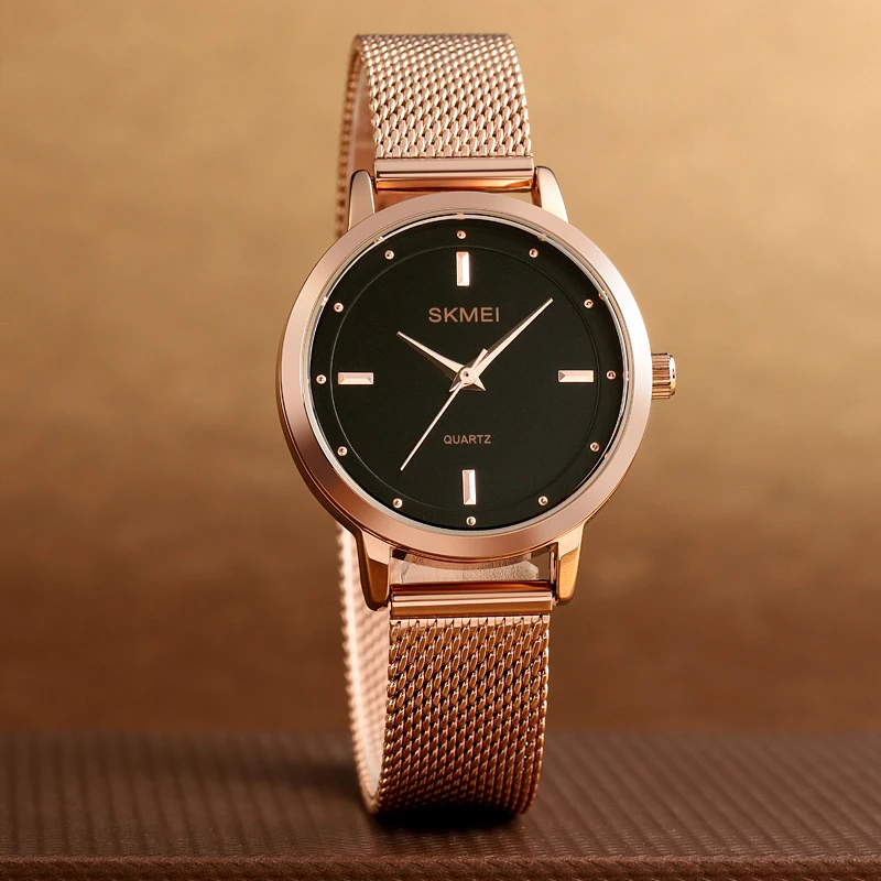 Часы SKMEI женские с сетчатым браслетом из нержавеющей стали, Роскошные Кварцевые водонепроницаемые брендовые, подарок для женщин, 1528