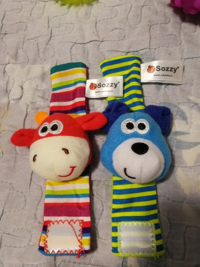 Товар хорошо упакован, запаха нет совсем, цвета яркие, застегиваются на липучки, если потрясти-издают звук как погремушка, только негромкий, ушки шуршащие, приятные на ощупь, липучка держит хорошо, не раскрывается. Покупала в подарок, довольна