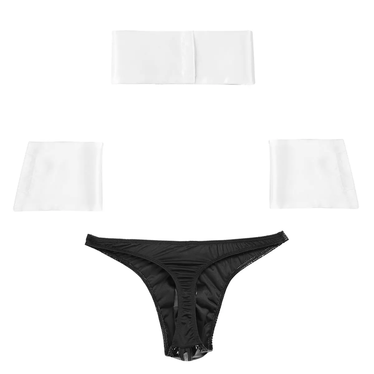 Комплект включает: 1x Мужское нижнее белье, 1x Воротник, 2x манжеты Состояние: Новый без этикетки Материал: Лакированная кожа, сатин, полиэстер