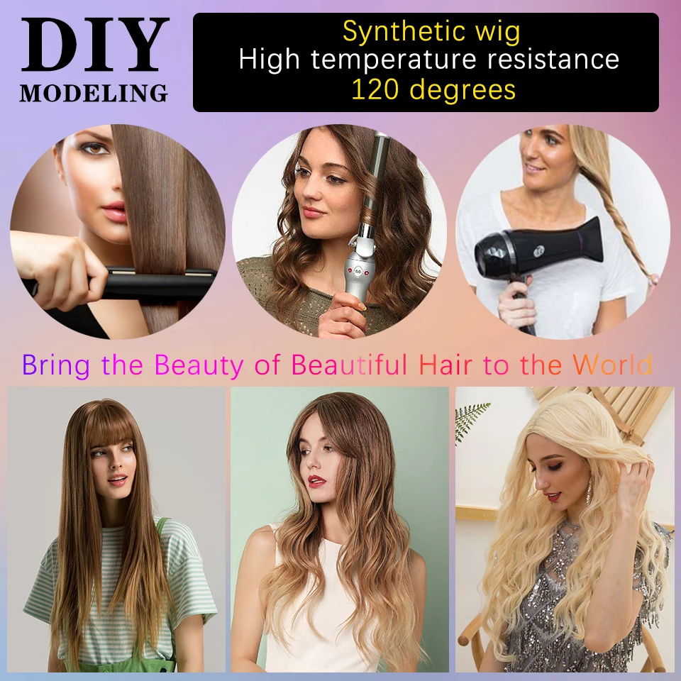 Парик Синтетический с длинными вьющимися волосами и челкой, термост...