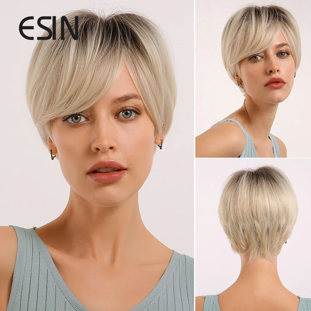 Esin, парик с короткими волосами, светло-седые волосы, парик с эффе...