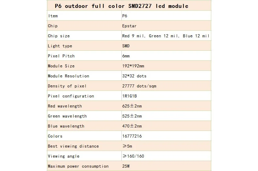 Упаковочный лист: 1 шт. P6 СВЕТОДИОДНЫЙ модуль 1 шт. кабель для передачи данных 1 шт. кабель питания (если вы покупаете N шт. светодиодный модуль, мы отправим вам N/2 шт. кабели питания, потому что 1 шт. кабель питания может поддерживать 2 шт. светодиодный модуль.