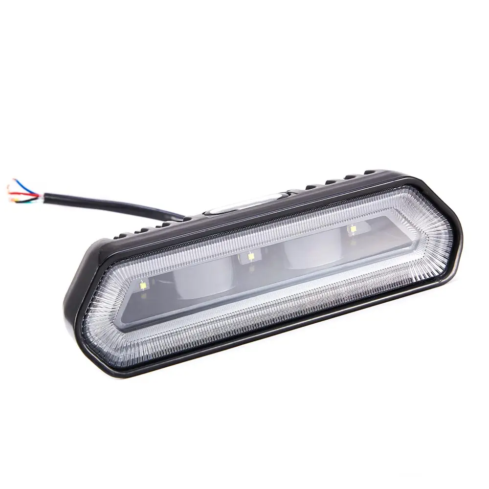 1. 5 режимов: стробоскоп, любезность, реверс, бег и тормоз 2. 3 варианта цвета ореола: янтарный, красный или синий 3. 1,75 "-2,00" "регулируемое крепление трубки & универсальный" "L" "кронштейн в комплекте. 4. 169 люмен потолочный белый светодиодный фсветильник для освещения багажника. 5. Белый светодиодный фонарь заднего хода/зоны 716 люмен 6. Корпус может использоваться в качестве стробоскопа (для гоночных и погоняющихся приложений), ходосветильник ней или третьего стоп-сигнала.