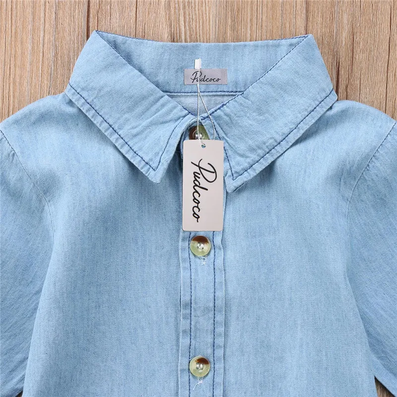 Одежда для маленьких девочек Pudcoco, джинсовое Короткое мини-плать...