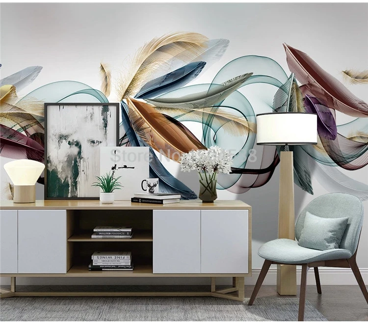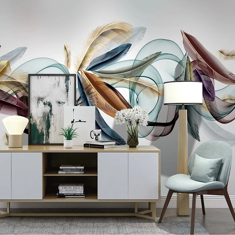 3D настенная живопись на заказ, современный светильник в скандинавском стиле, Роскошная ручная роспись перьями, абстрактные дымчатые обои, креативная роспись для гостиной, спальни