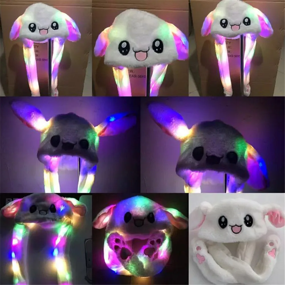 Милая плюшевая шапка с подвижными кроличьими ушками, милая светящая...