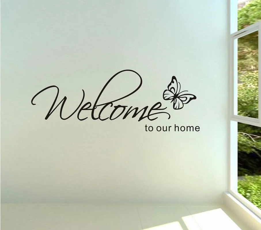 Надпись Добро пожаловать в наш дом, настенные Стикеры с текстовыми узорами, домашний декор, наклейки для гостиной, обои для спальни, декоративные Стикеры с бабочками