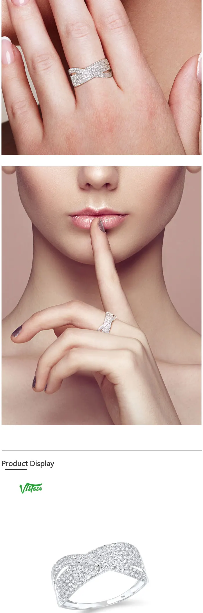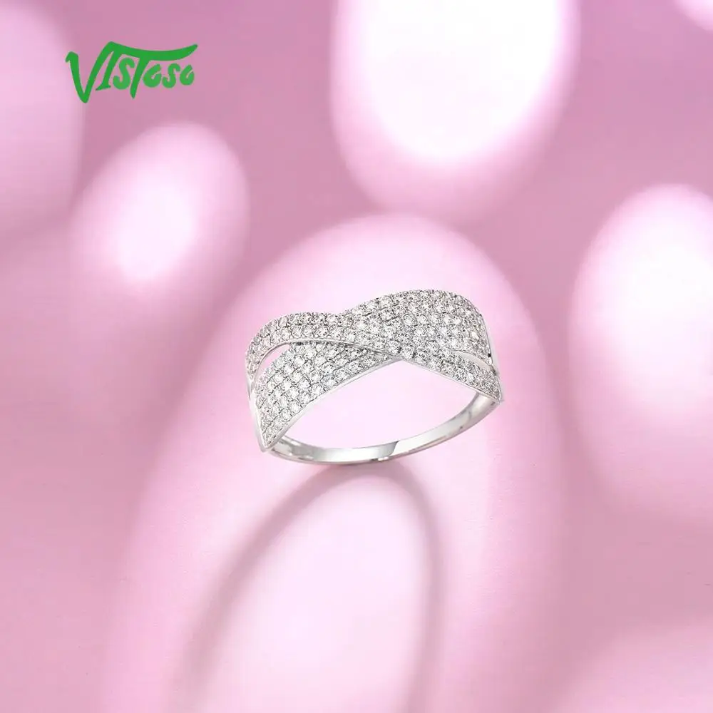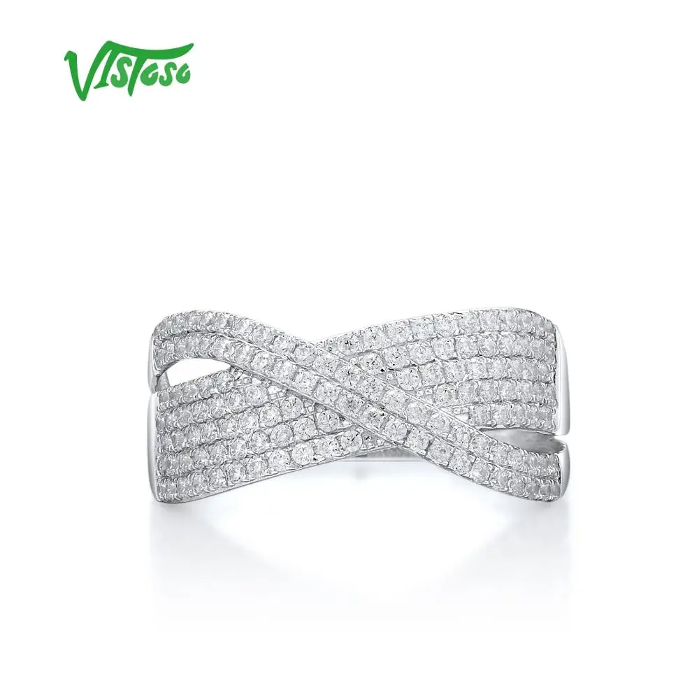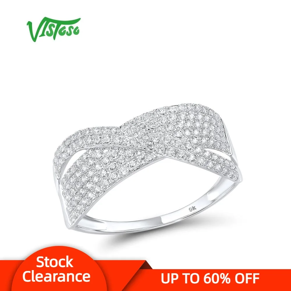 Женское золотое кольцо VISTOSO, кольцо из натурального белого золота 9K 375 с блестящим белым фианитом, ювелирные украшения на годовщину