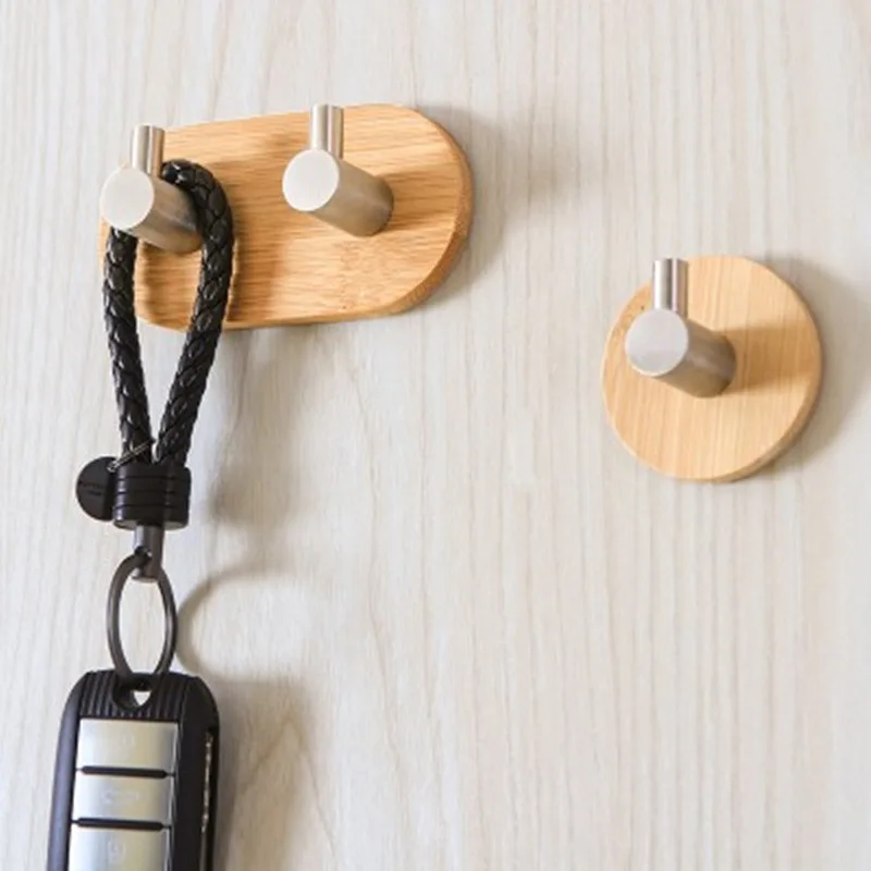 Настенная вешалка для одежды и сумок из натурального бамбука и нержавеющей стали