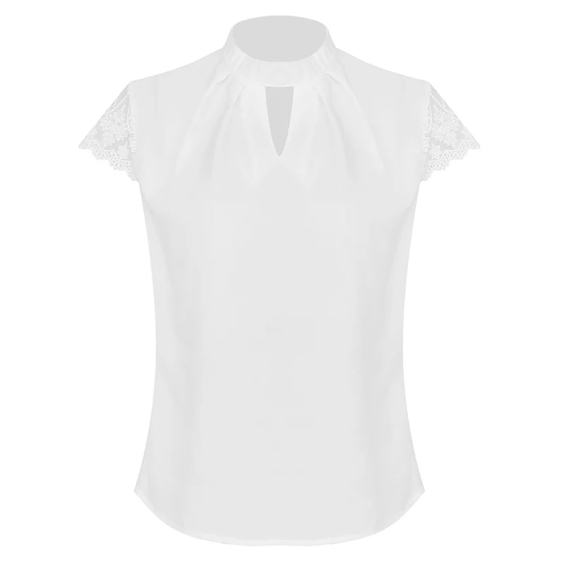 Женская шифоновая блузка, с воротником-стойкой, кружевная, летняя, ...