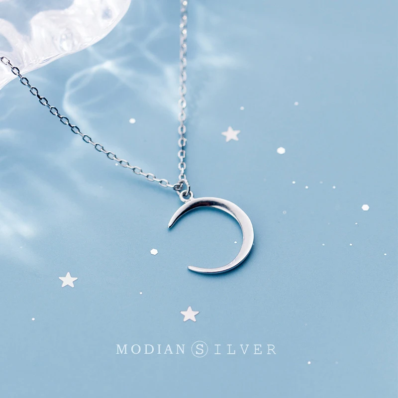 Женское минималистичное ожерелье с подвеской в виде полумесяца MODIAN, ожерелье из стерлингового серебра 925 пробы с регулируемыми звеньями, изящное ювелирное изделие, 2020