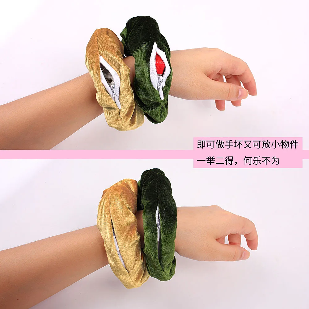 Резинка для волос, бархатная, эластичная, с карманом, на молнии, 1 шт.