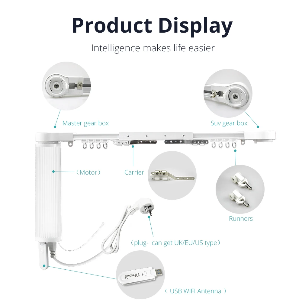 Аксессуары для штор, ремни для бегунов, коробка передач, вилка, мотор, Wi-Fi приемники, работают с приложением Alexa Google Home Tuya