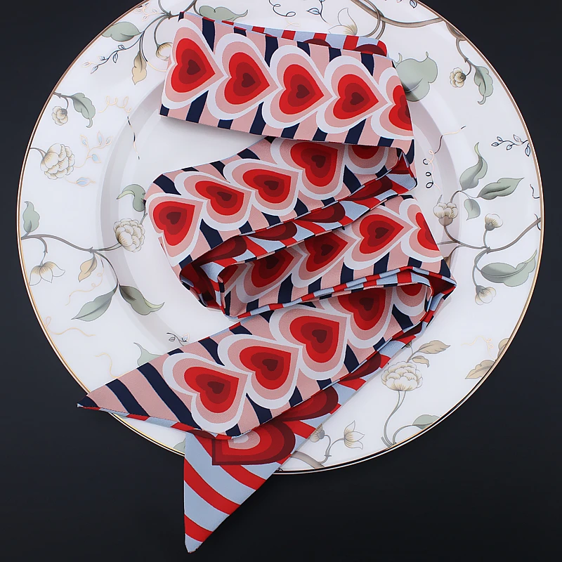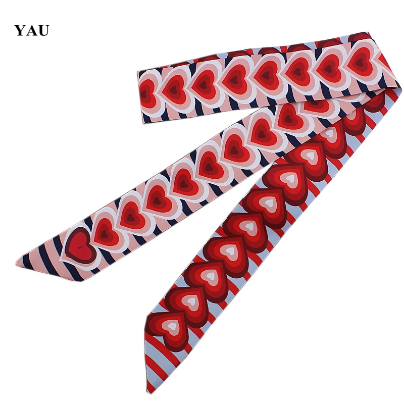 Шелковые женские шарфы 120 см * 5 см, Маленький Длинный многослойный модный роскошный фирменный шарф в полоску с надписью Love Heart, женские ленты