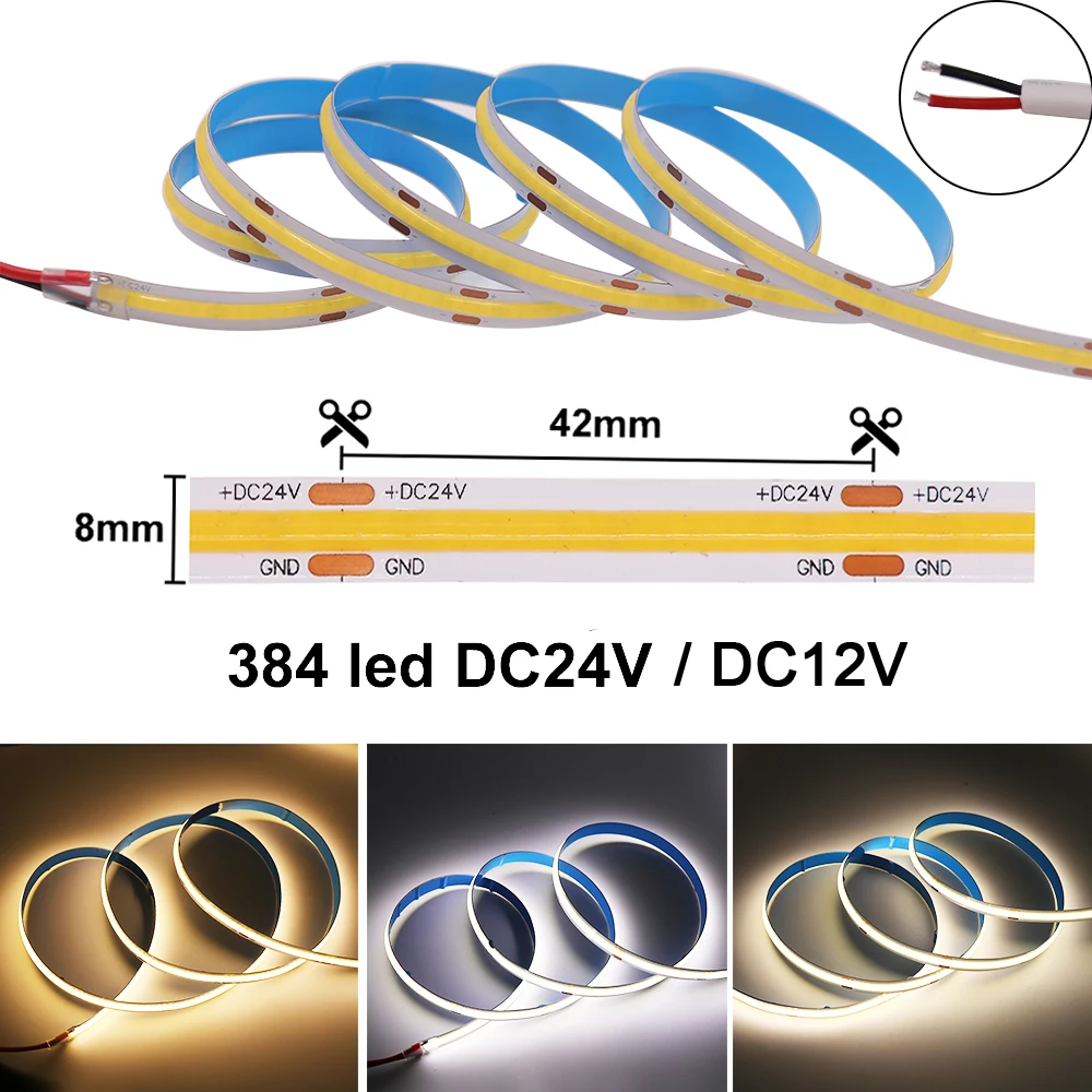 Светодиодная лента COB 384 528 светодиодов, гибкая светодиодная лен...