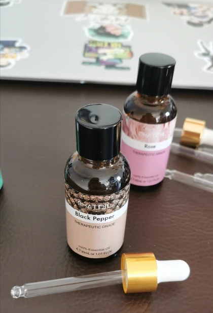 Доставка быстрая. Упаковано хорошо, флаконы - тёмное стекло, качественные, надежно закреплены в коробочках. Транспортная крышка и пробка заменяются приложенной к флакону крышкой с пипеткой. Очень удачная фасовка, вызывает уважение к производителю. Запах масла очень сильный, оставило устойчивое масляное пятно на салфетке. Запах розы и иланг-иланг очень похожи на натуральные. Предполагаю, что это раствор натуральных масел. На самом деле чистые натуральные масла весьма дорогие, имеют слишком, даже чересчур насыщенный запах и достаточно быстро окисляются. Я родился и вырос в Крыму, розовое масло в оригинале - вязкое масло, на холоде особенно. Приходилось участвовать в полевых сборах бутонов чайной розы, руки распухали от укусов пчел. Даже в советское время маленькая пробирка-пробник розового масла стоила недёшево.