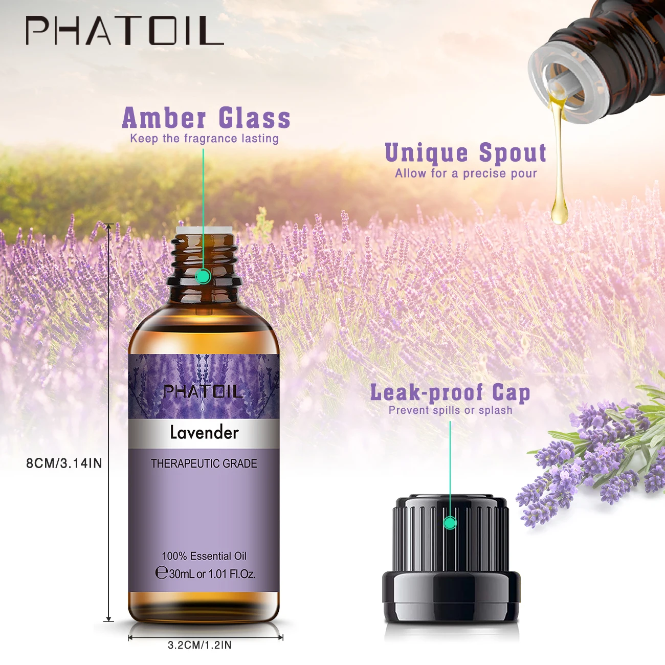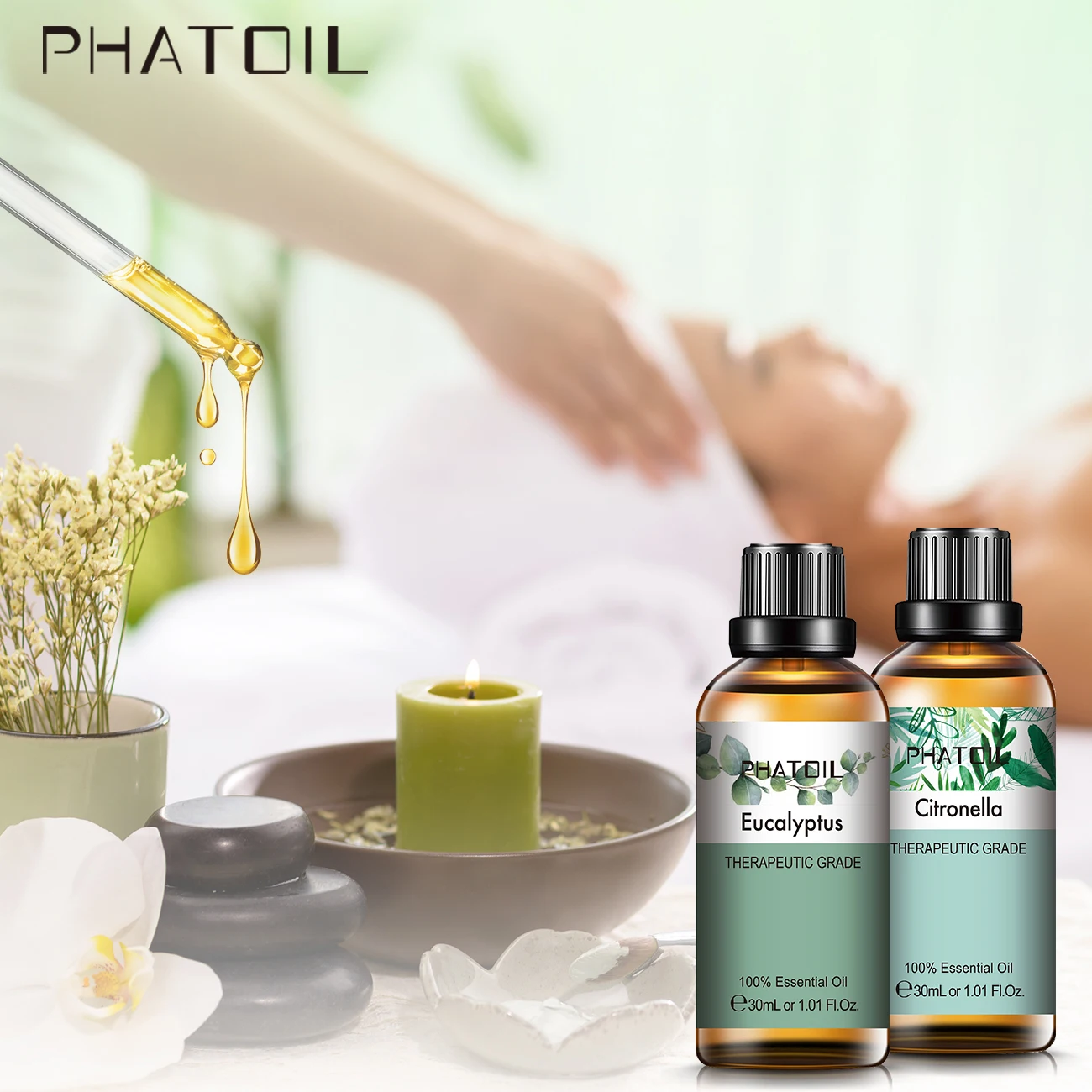 Эфирные масла эвкалипта PHATOIL для увлажнителя, роза, лаванда, жасмин, мята, сандаловое дерево, бергамот, чайное дерево, ароматическое масло, 30 мл