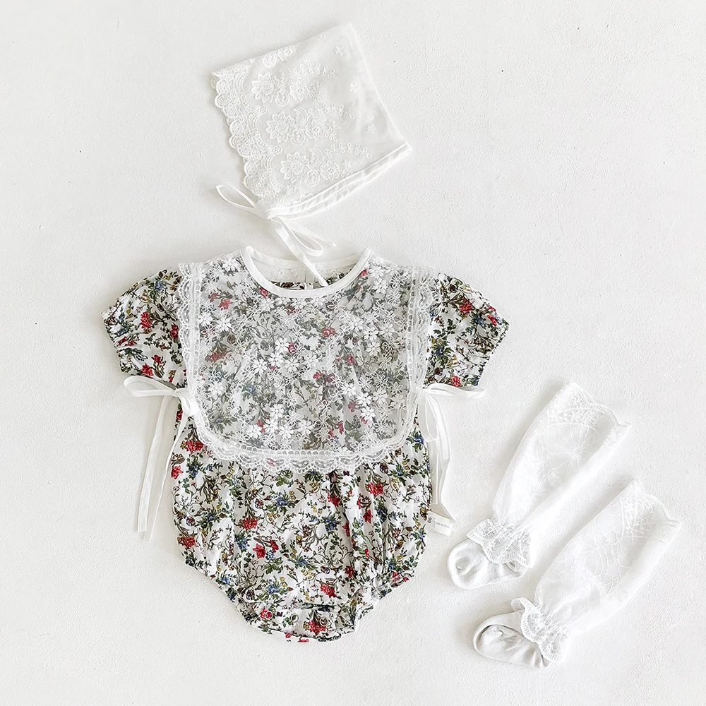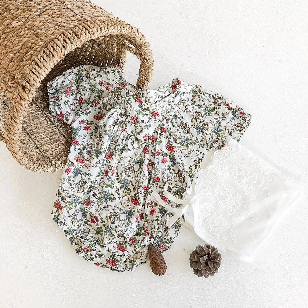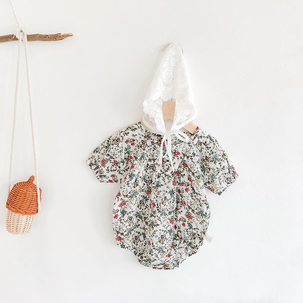 Боди для девочек, летний хлопковый комбинезон с цветочным принтом, Одежда для новорожденных