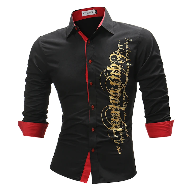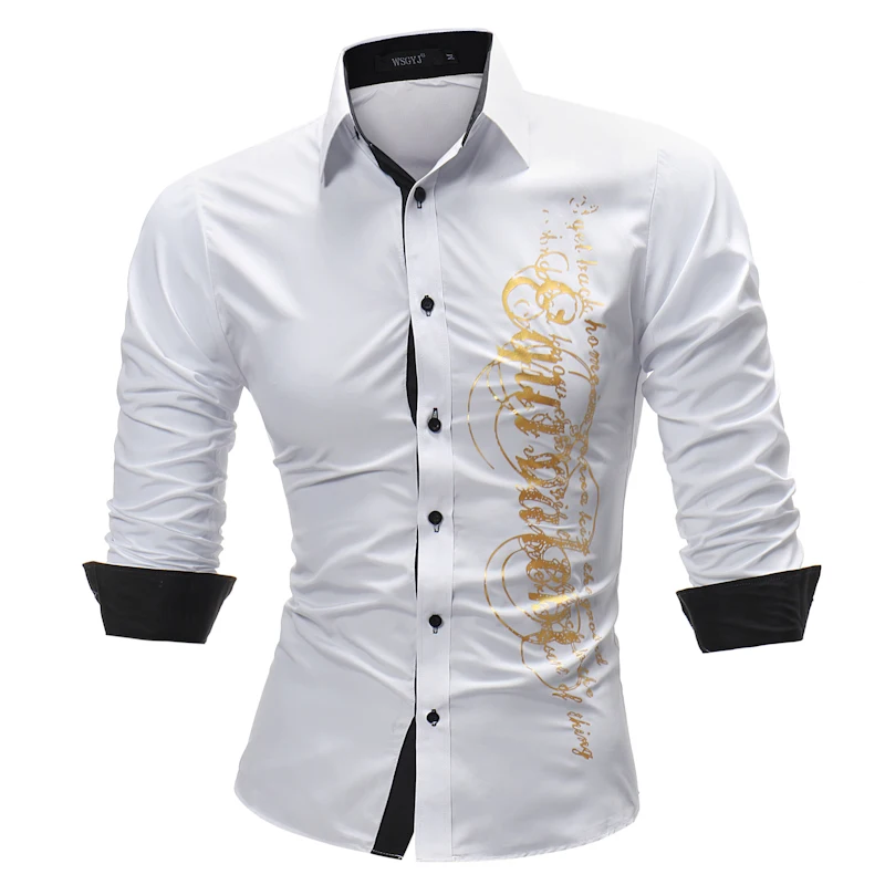 2020, модная роскошная мужская рубашка, Топ с длинным рукавом, мужская рубашка с золотым принтом, приталенная Мужская рубашка с длинным рукавом и лацканами, размера плюс, 4XL
