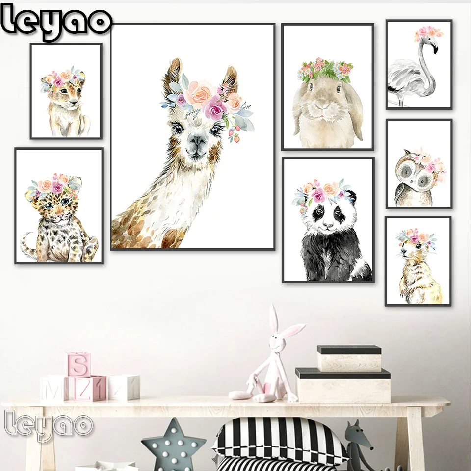 Лама панда Альпака леопард лев мультфильм алмазная живопись полная квадратнаякруглая, Детская комната Декор