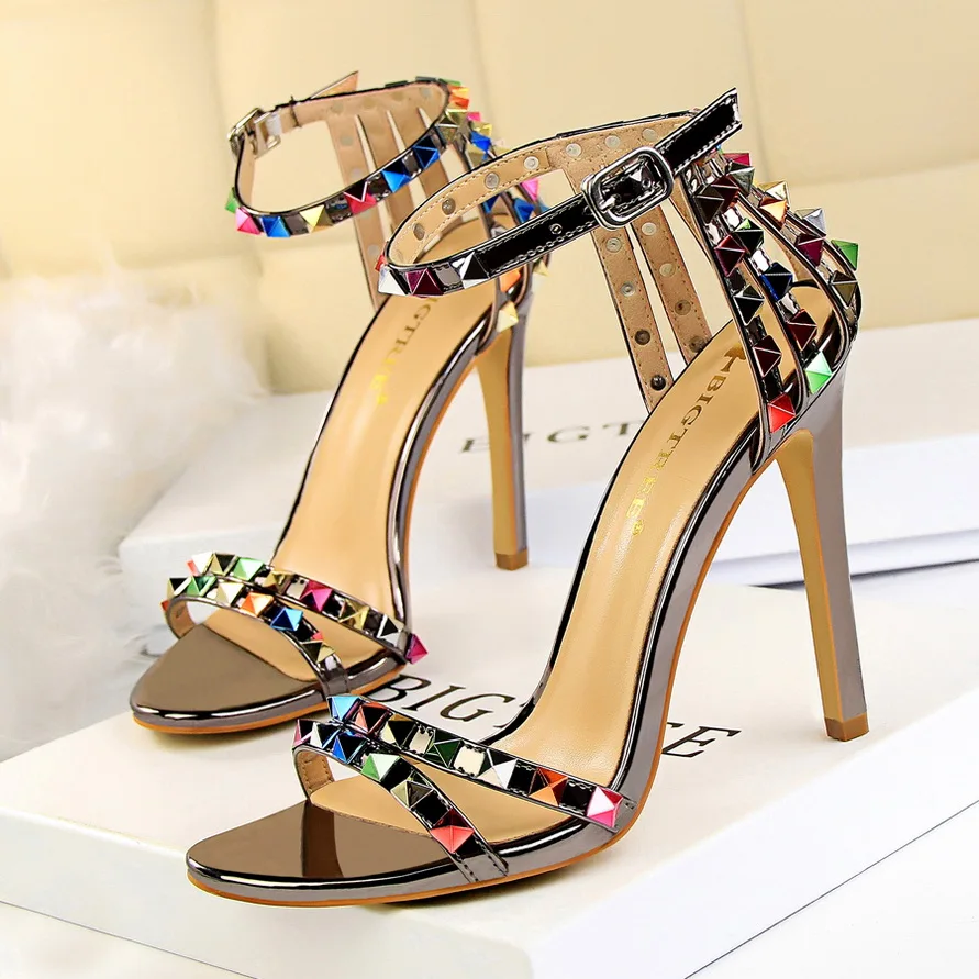 Женские босоножки с заклепками, сандалии-гладиаторы на высоком каблуке 11 см, обувь для стриптиза, фетиш, обувь на платформе, лето 2020