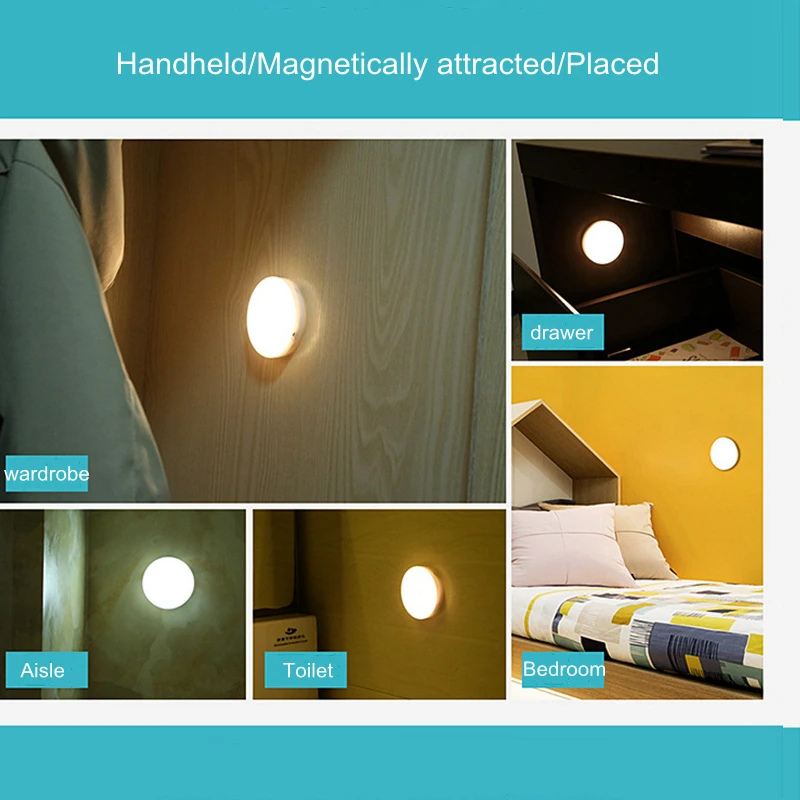 Основная информация о товаре:Наименование товара: Круглый круглый сенсорный светильникТовар Размеры: 70x70x15mmВходное напряжение/ток: 5 В/1000 мАЕмкость литиевой батареи: 500 мАч (включая батарею)Товар Материал: АБС-пластикОсобенности:1. Этот продукт маленький и легко носить с собой.2. Этот продукт является портативной лампой и может также использоваться как настенный светильник.3. Этот продукт имеет сильную адсорбцию магнита и может быть адсорбирован на металлической пластыре.4. Этот продукт имеет плавный режим затемнения, сенсорный светильник, прост в эксплуатации.5. Защита глаз, подходит для различных случаев, может использоваться в качестве фонарика при выходе.6. Идеально подходит для любого места-этот светильник может использоваться для того, чтобы светильник вашего коридоры, лестницы, ванные комнаты, спальни, шкафы, складские помещения и многое другое. Беспроводная работа с питанием от аккумулятора означает отсутствие проблем с установкой. Электрика не требуется. Вы можете установить светильник там, где он вам нужен.7. Функция автоматической памяти, запоминайте и запускайте режим работы в прошлый раз.2 шт. включают в себя:2 * Магнитный ночной Светильник (батарейки входят в комплект)2 * липкий железа2 * USB Перезаряжаемый кабель4 шт. включают в себя:4 * Магнитный ночной Светильник (батарейки входят в комплект)4 * липкий железа4 * USB Перезаряжаемый кабель