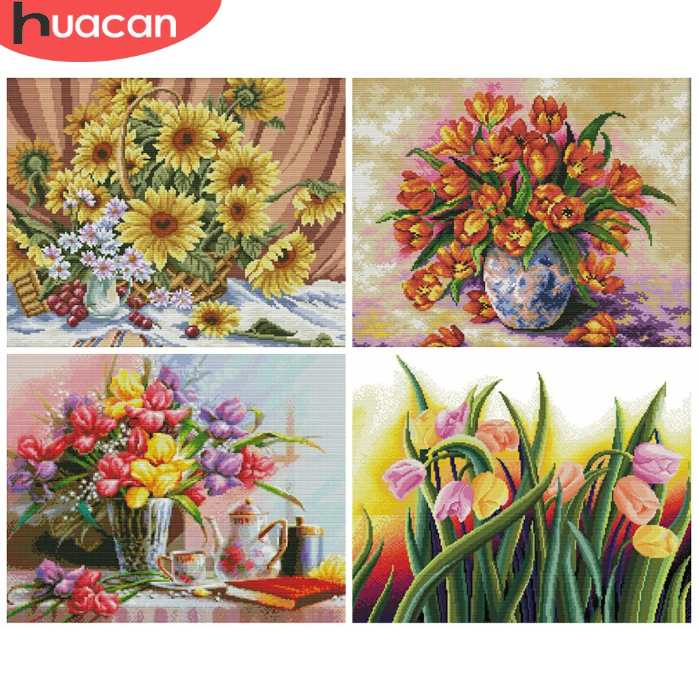 Набор для вышивки крестиком HUACAN, картина с цветами ручной работы...