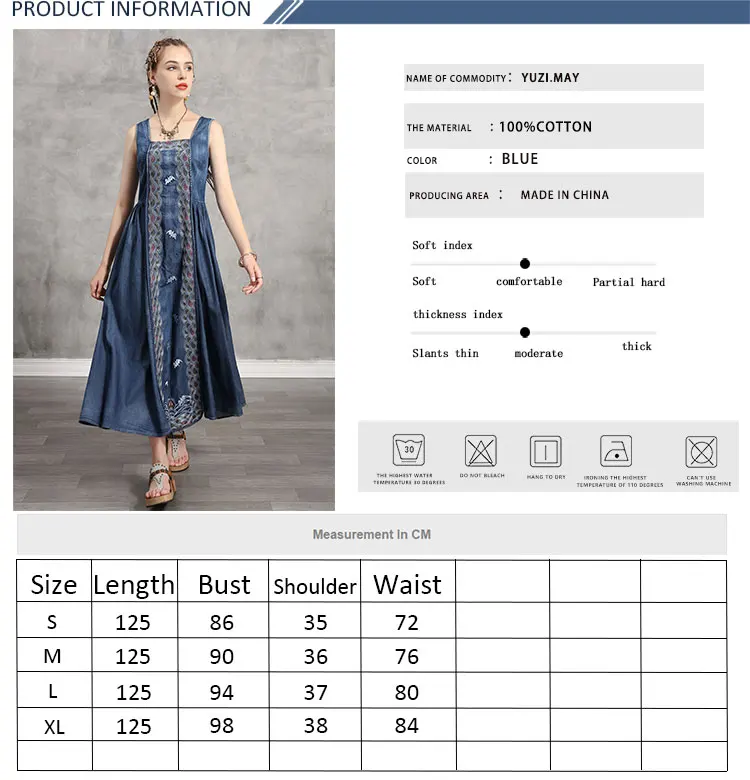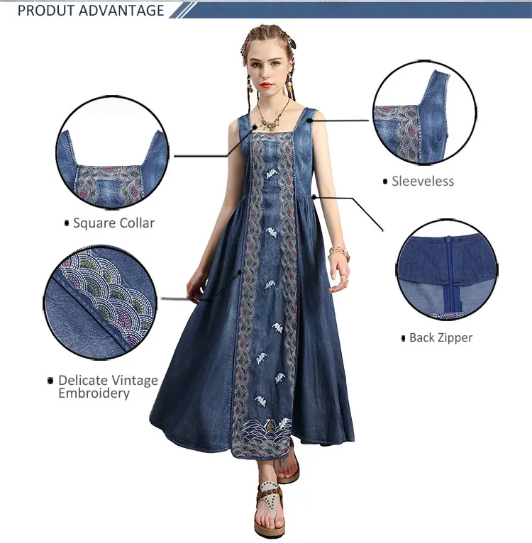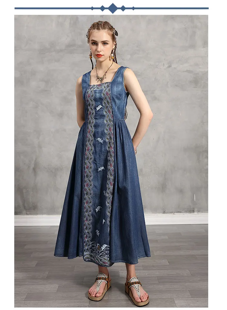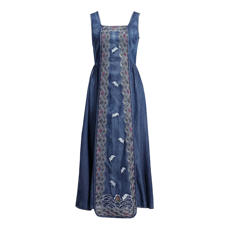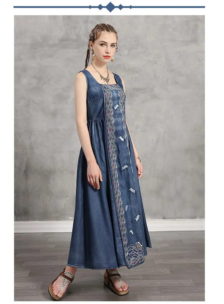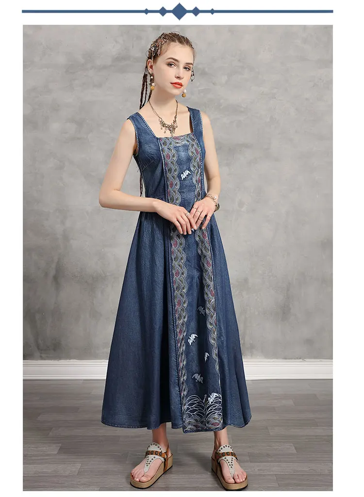 Женское джинсовое платье без рукавов Yuzi.may, винтажный сарафан с вышивкой и расклешенным подолом, лето 2020