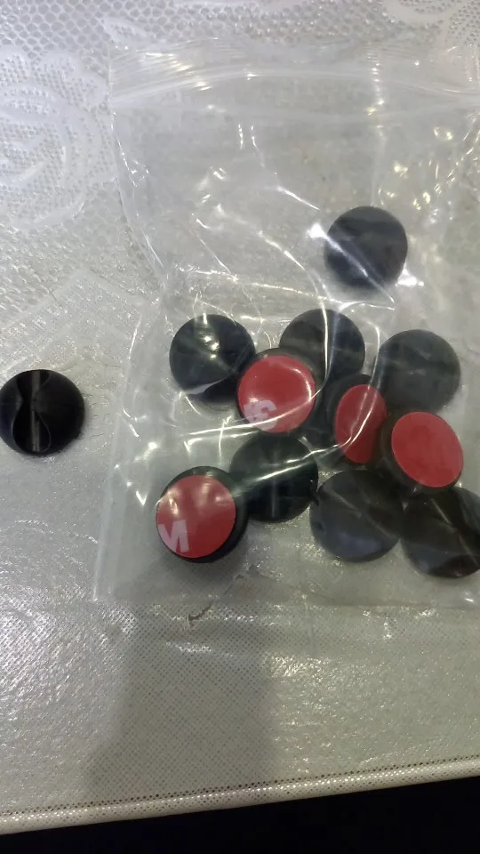 Мягкие, полуматовые, приятные на ощупь. Скотч реально 3М. Отверстие в середине чуть больше диаметра провода, кабель не вылетает, но свободно ходит. Не знаю хорошо это или плохо, эксплуатация покажет. За заказ 30 шт дали подарочек - наклейку Vans. Пустячок, но приятно)