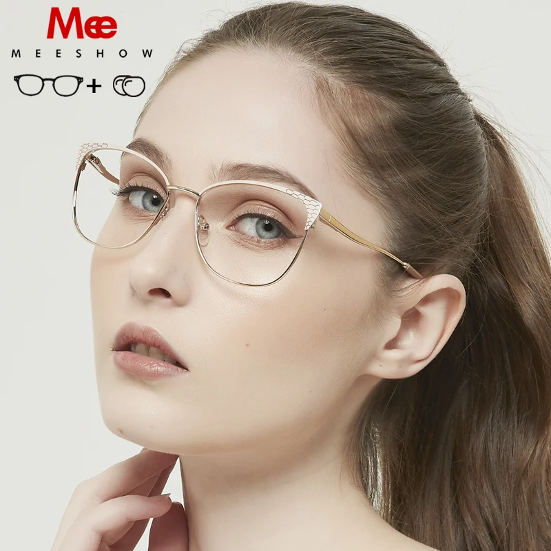 Женские очки с оправой для зрения MEESHOW, очки кошачий глаз из тит...