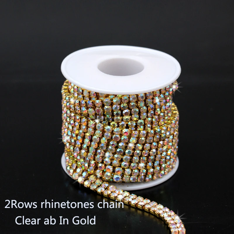 Цепочка для стразы, 1 ярд, 2 ряда, ss6-ss16 кристалл AB, пришивная, ЗолотаяСеребряная цепочка для стразы, аксессуар для одежды