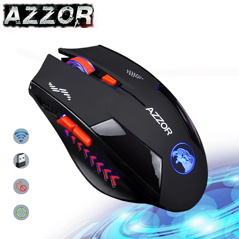 Беспроводная оптическая мышь AZZOR, бесшумная, 2400 точекдюйм, со встроенным аккумулятором