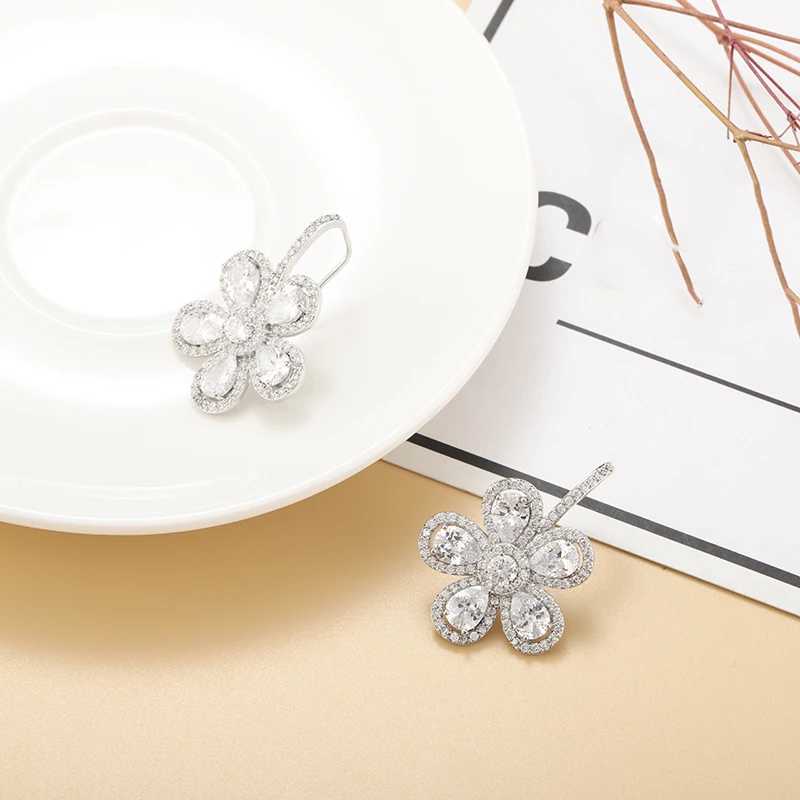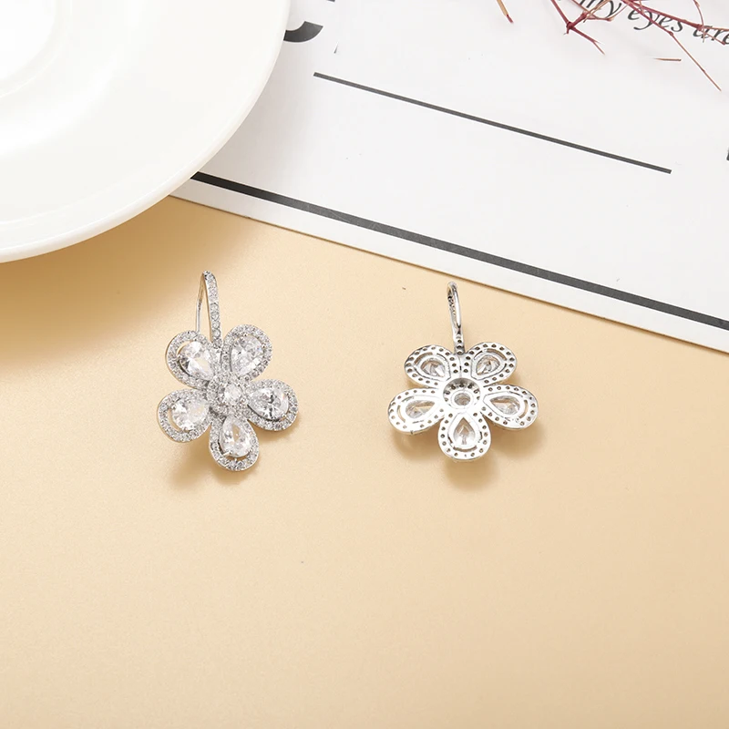 Женские Висячие серьги с крупными лепестками, инкрустированные цирконием, ювелирные изделия