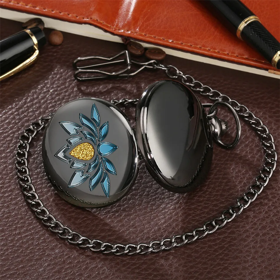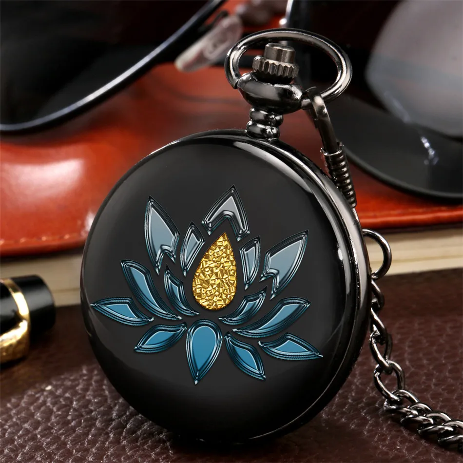 Часы карманные кварцевые с принтом Голубого лотоса, на цепочке