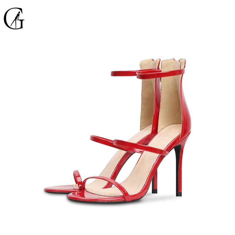 GOXEOU женские босоножки Лакированная кожа круглый носок с тонким поясом; На высоком каблуке; Вечерние пикантные модные туфли-лодочки для офиса женские туфли размер 34-46