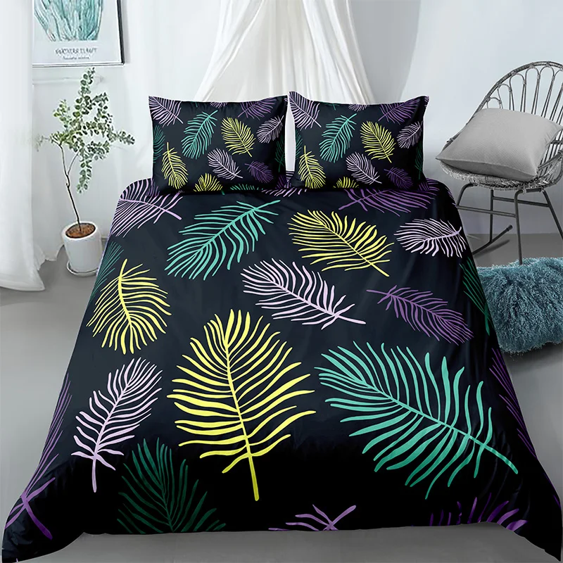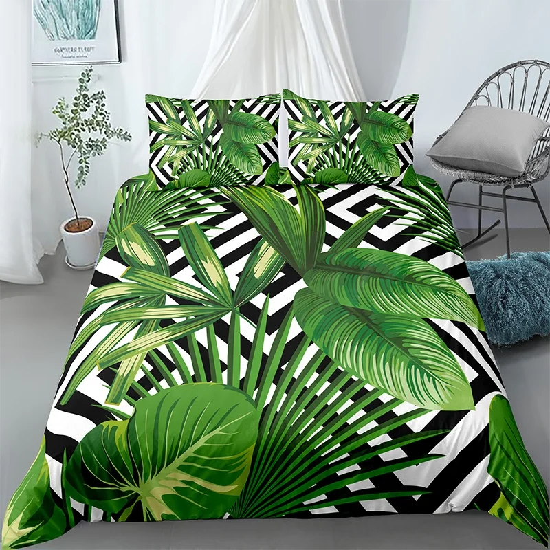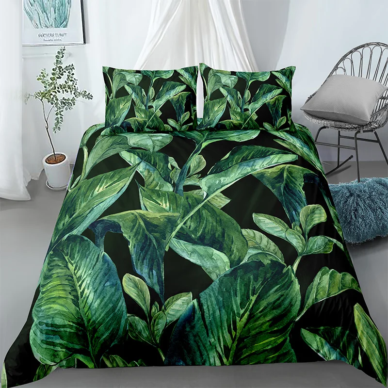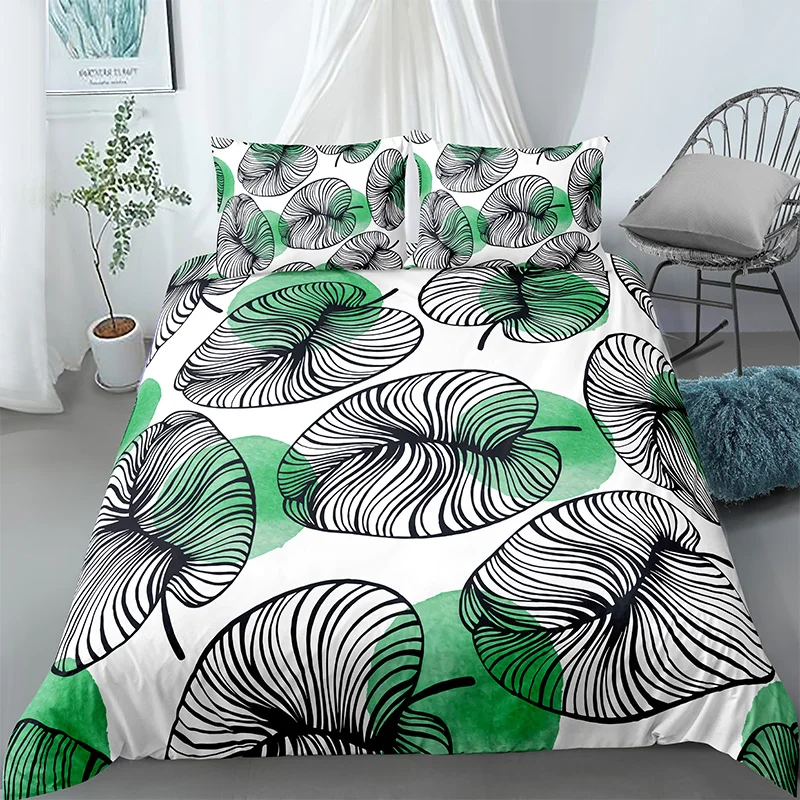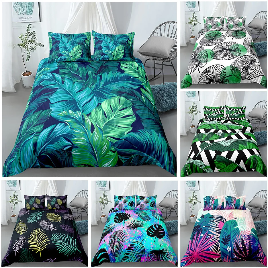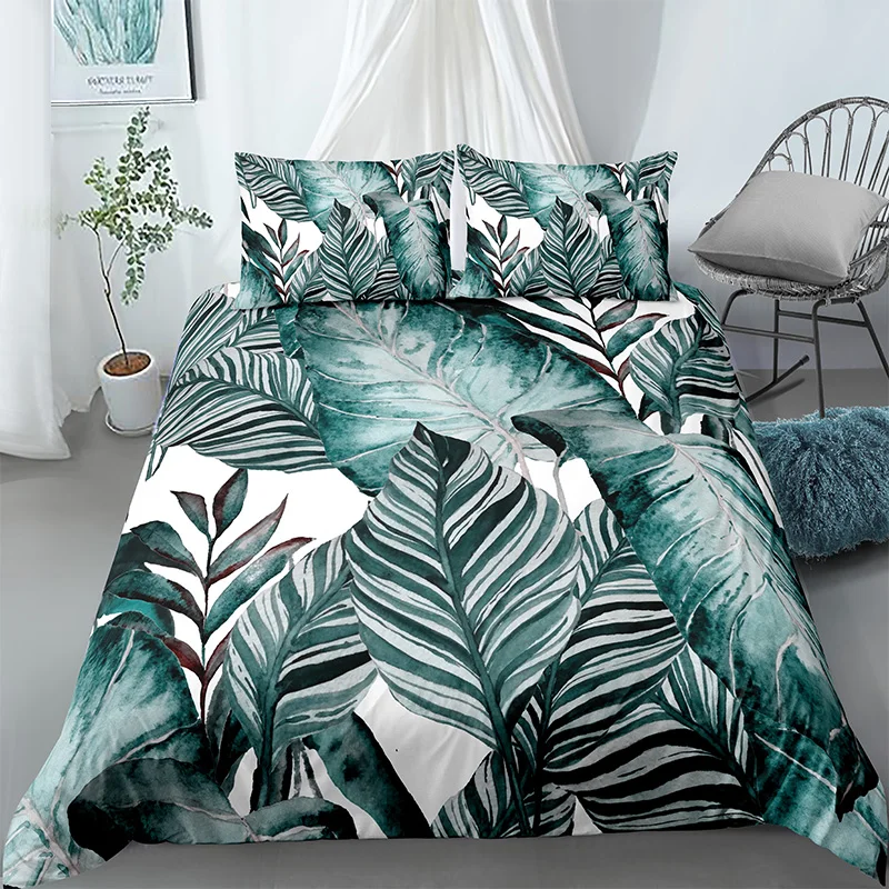 3D ладони постельные принадлежности с изображением листьев комплект пододеяльник, наволочки для подушек для дома Спальня роскошная кровать для 23 шт. в богемном стиле одеяло