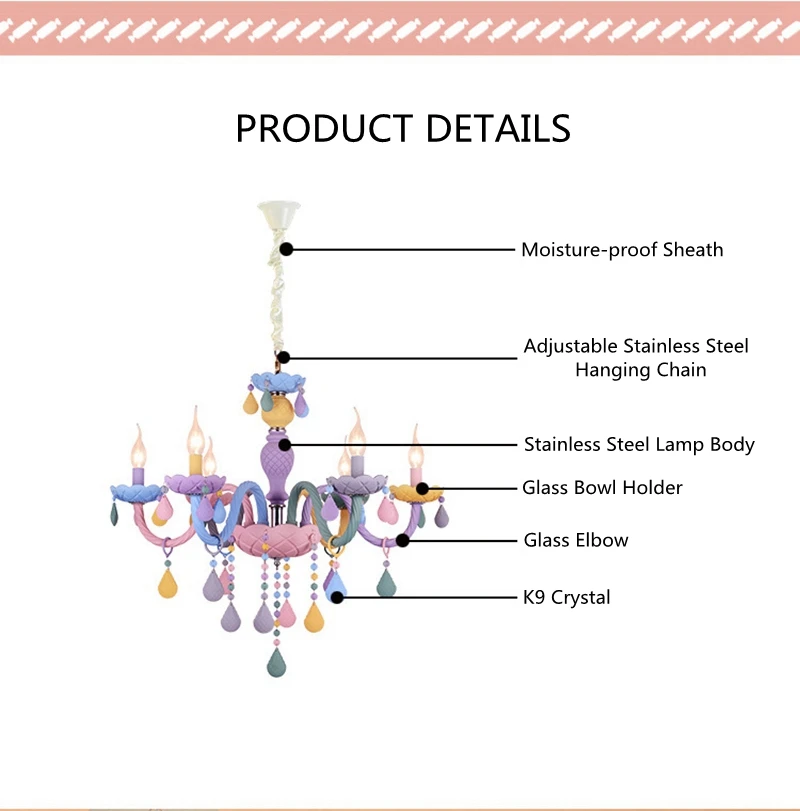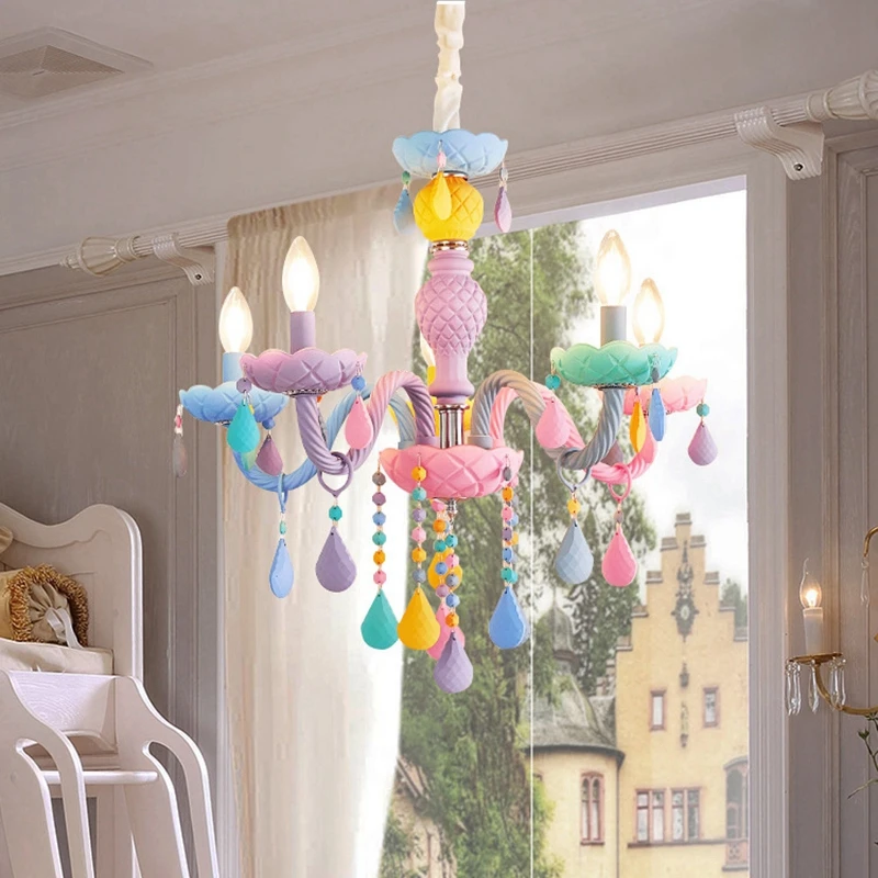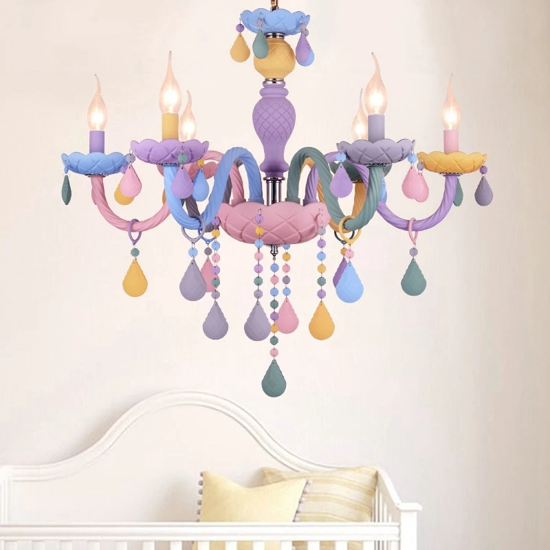 Хрустальная люстра в Европейском стиле, для детей, для макарон, светодиодная люстра, люстра в виде радужной свечи для спальни, цветное Внутреннее освещение