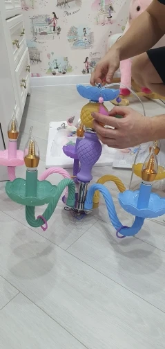 Получили красавицу люстру, пока не собирали, все вроде целое. Цвета очень красивые, дочь уже заценила. Упаковано очень хорошо, но несмотря на это тяжёлые детали при перевозке продавили внутреннюю перегородку пенопластовый упаковки. Ждём, не дождемся, когда люстра уже украсит дочкину комнату