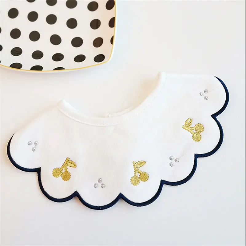 Детские нагрудники в форме цветка с вышивкой вишни, Хлопковое полотенце для кормления, нагрудники для новорожденных с милым сердцем, нагрудники для кормления младенцев