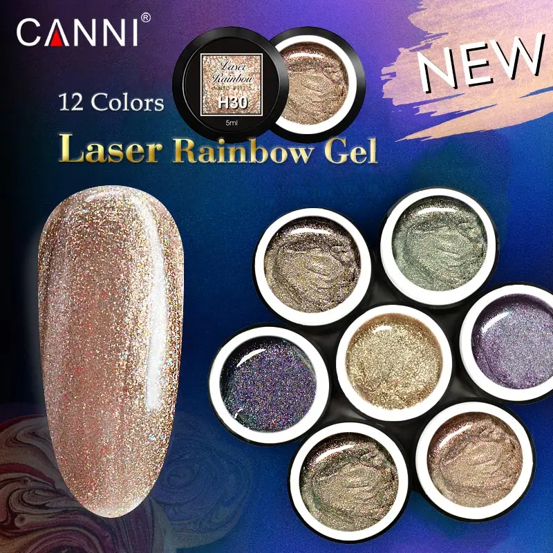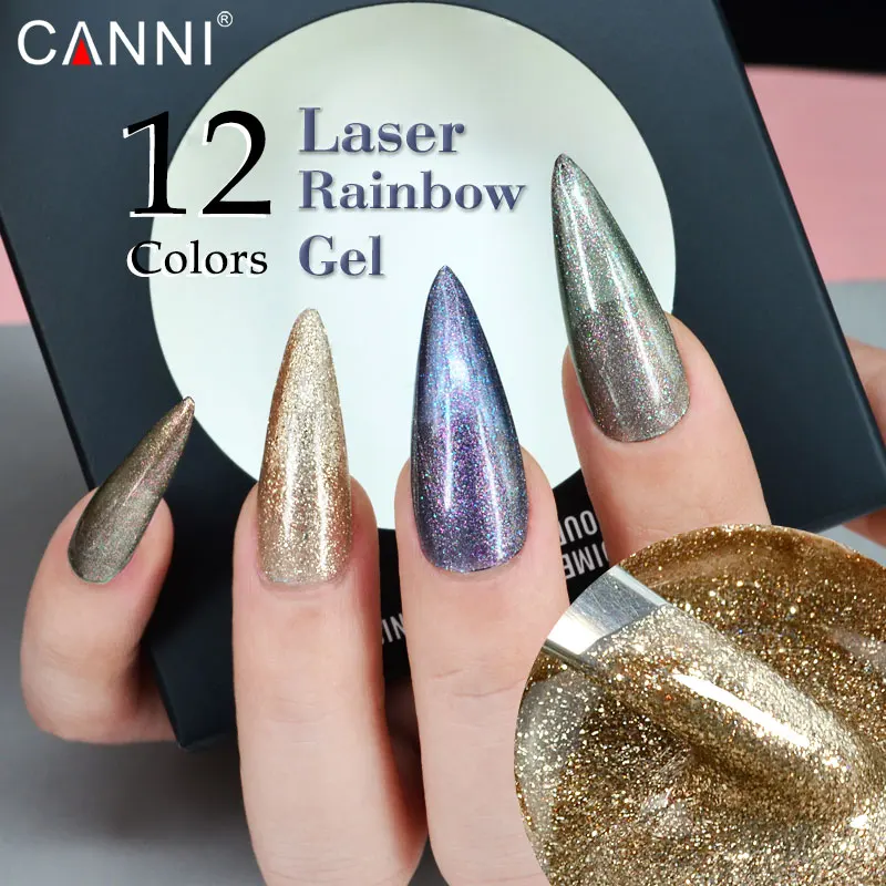 Лазерный Радужный Гель-лак CANNI 5 мл * 12 шт., 5 мл, баночка, высококачественный эффект хамелеона кошачий глаз, УФ-светодиодный Гель-лак для дизайна ногтей
