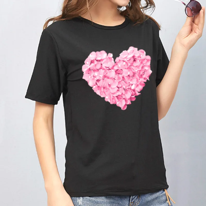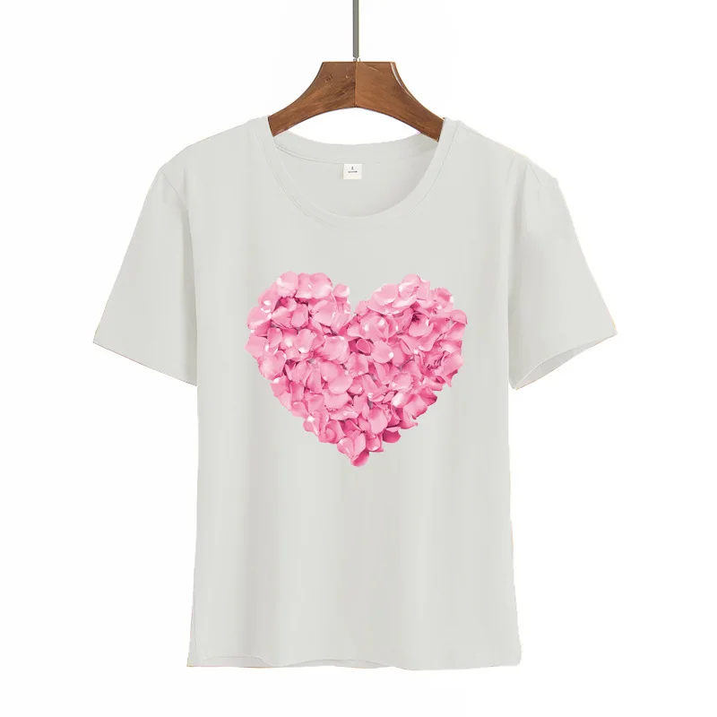 Женская футболка с принтом в виде розовых сердец и цветов, повседневные белые топы для влюбленных пар, женская футболка с коротким рукавом, с принтом в виде сердец, 2020