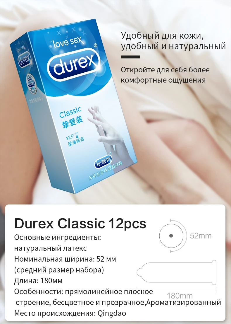 Презервативы Durex из натурального латекса, 52 мм, 4 типа